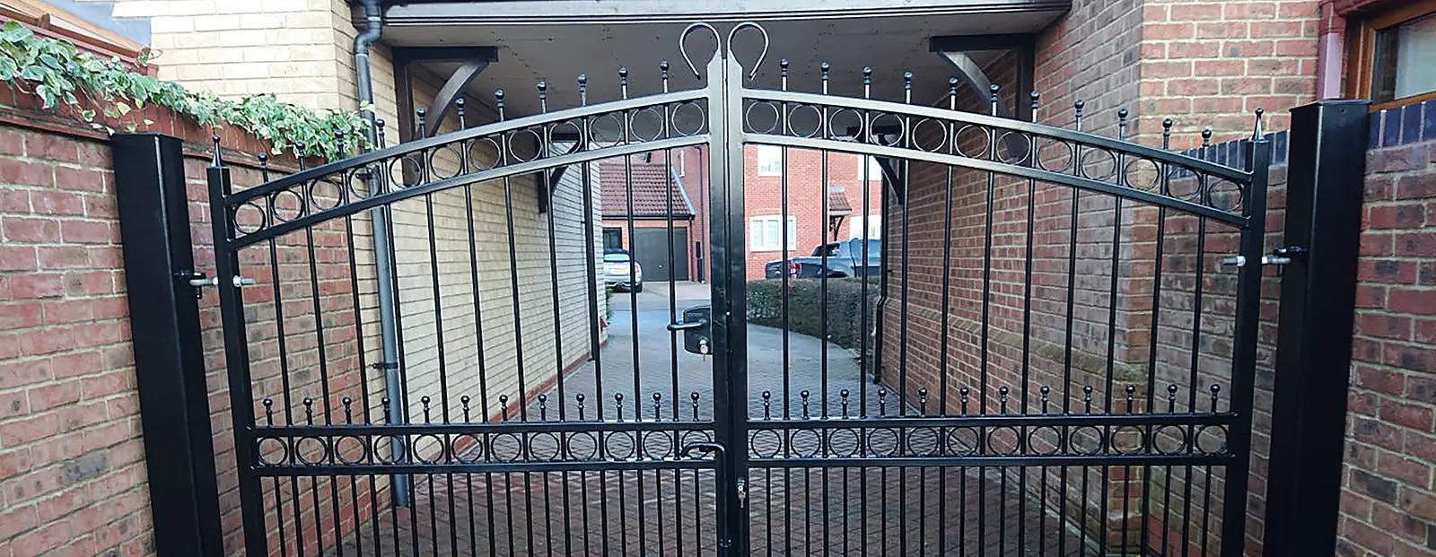 Traditional wrought iron metal gates can be personalised to match the exact style of your property. You can choose decorative features and finials and even include letters.